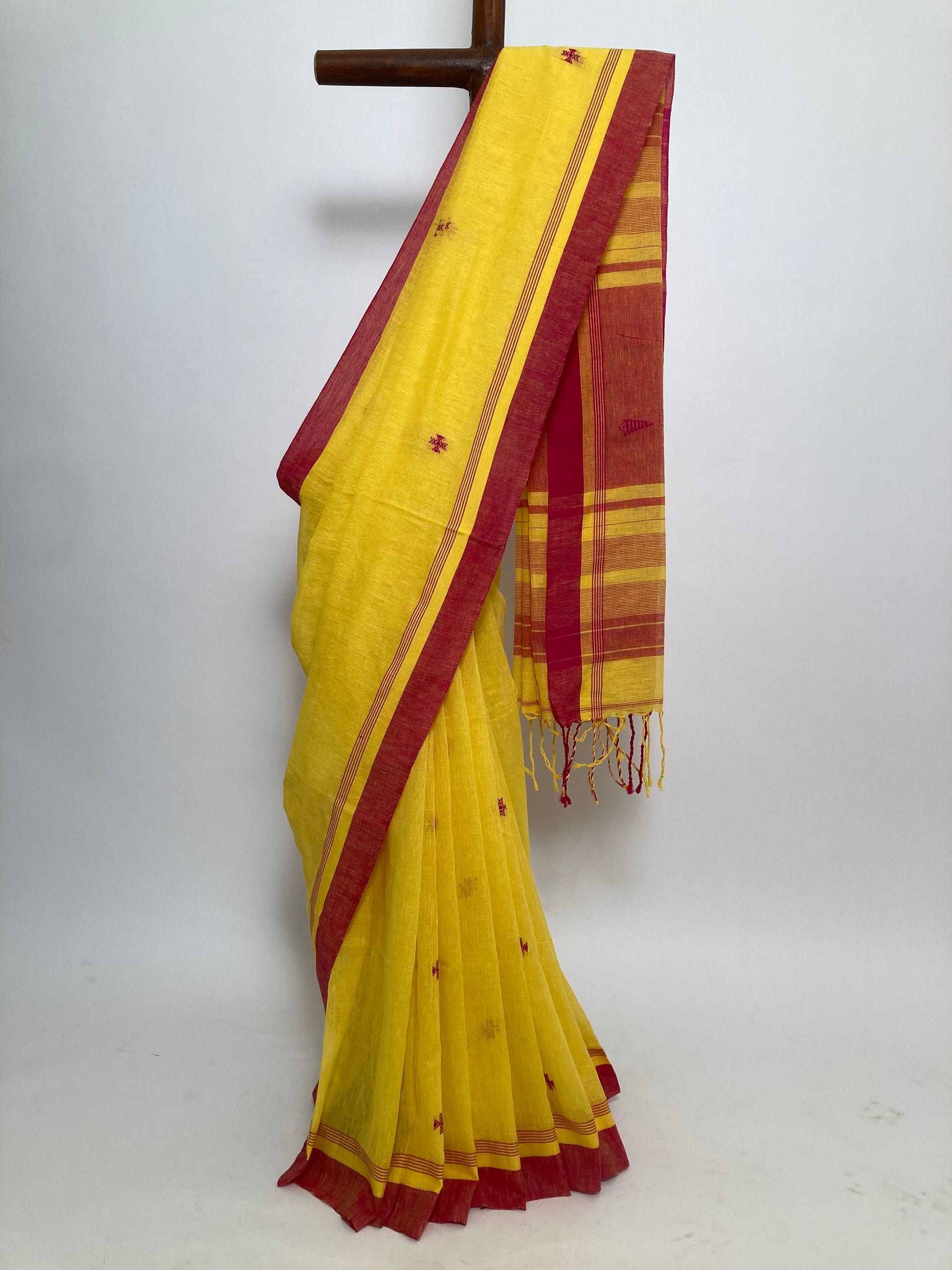 A Khadi cotton saree is a traditional Indian garment made from handwoven cotton fabric, known for its natural texture, comfort, and eco-friendliness. Khadi, a symbol of India's self-reliance movement led by Mahatma Gandhi, has a coarse yet soft feel, making it suitable for everyday wear as well as special occasions.