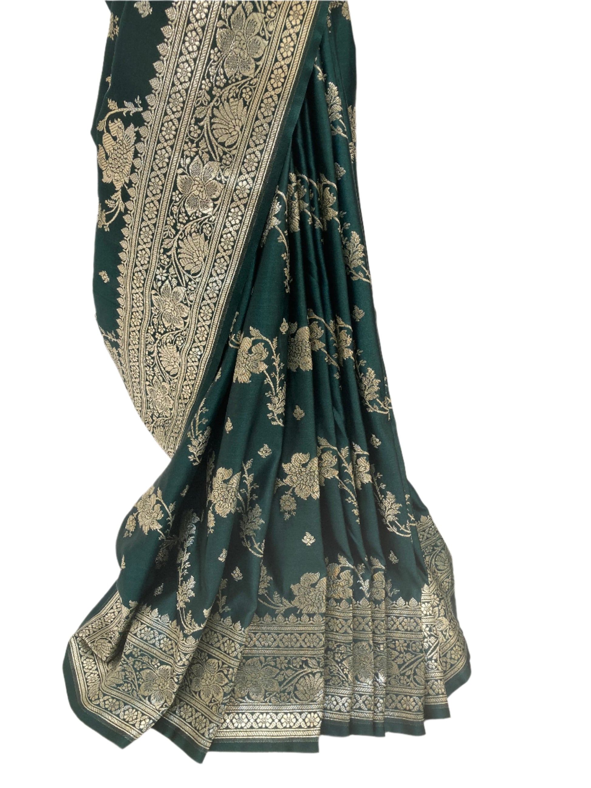 Bottle green Banarasi satin Saree