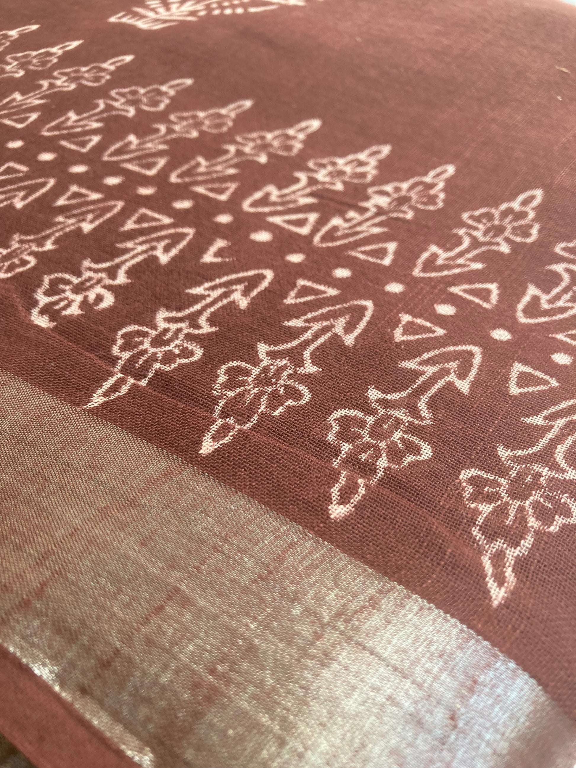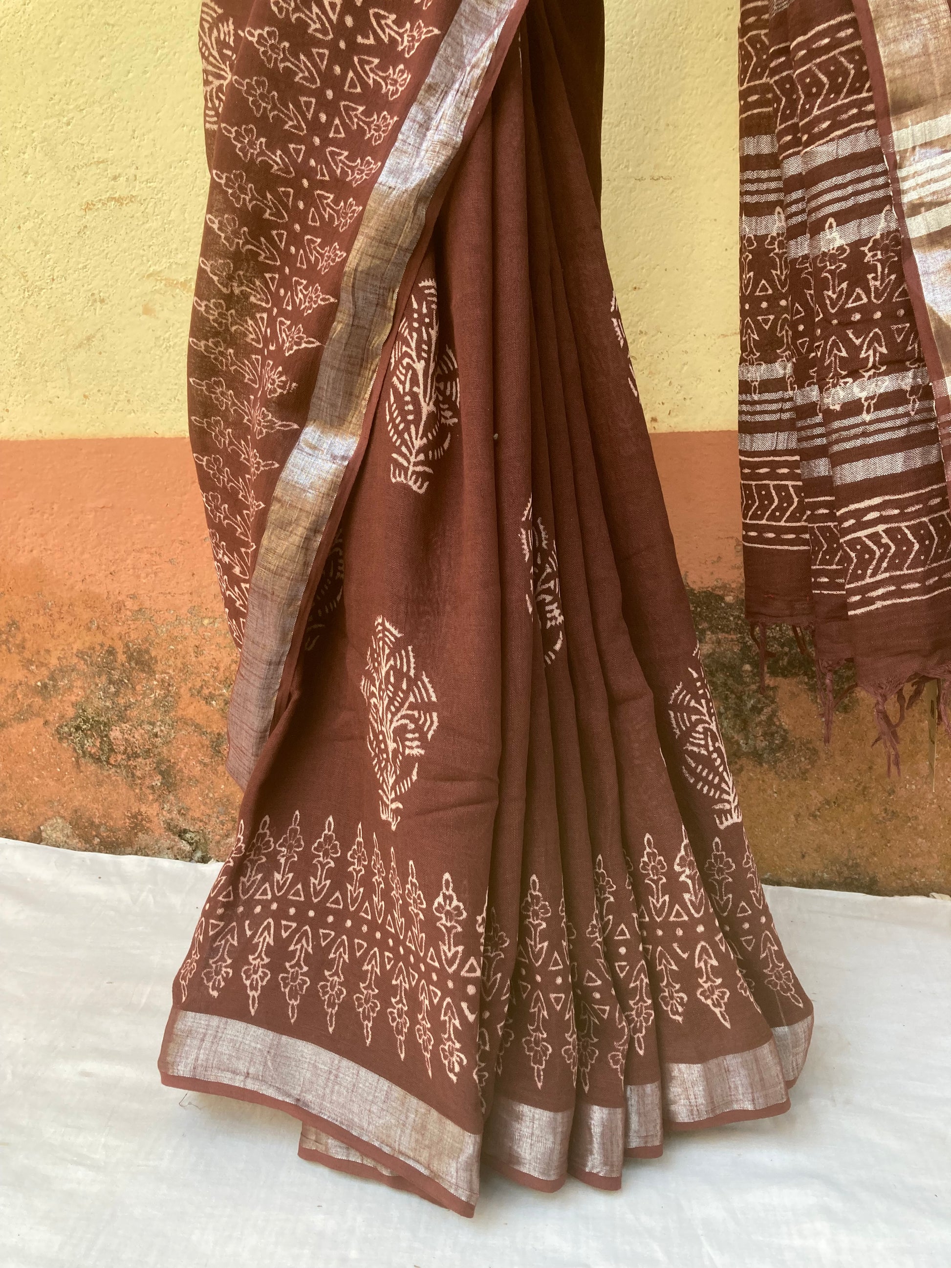 Our brown block printed sarees boast vibrant, lasting colors and intricate motifs, making them ideal for casual outings, festive occasions, or any setting where you want to make a statement. Lightweight and breathable, these sarees ensure effortless grace and timeless appeal.