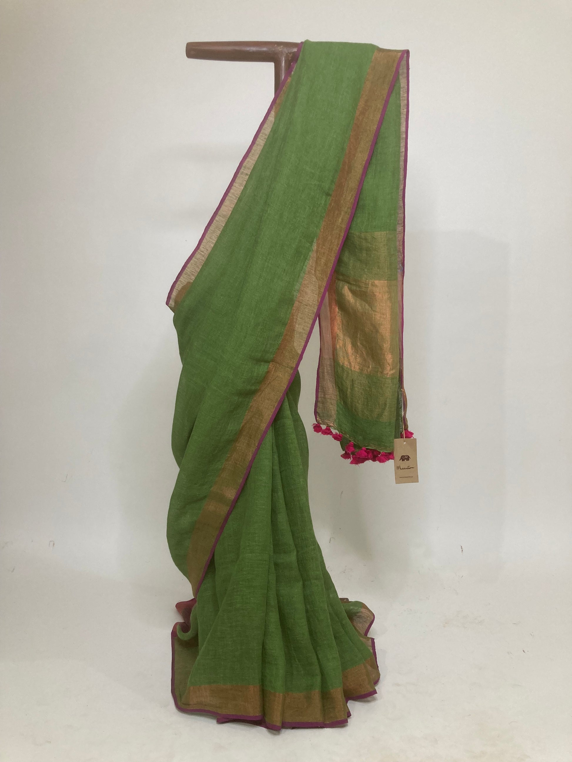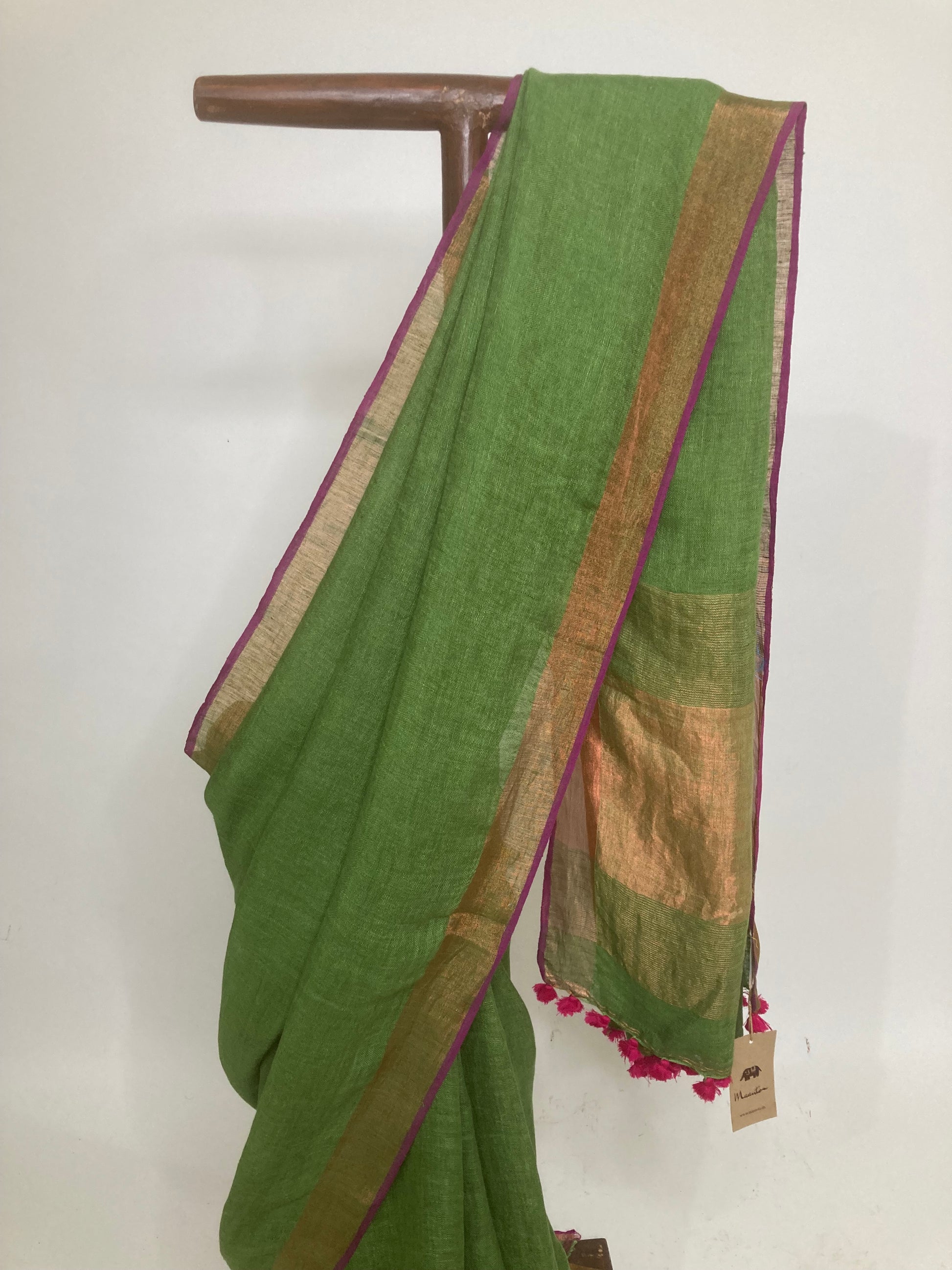 Forest Green Handloom Linen Saree