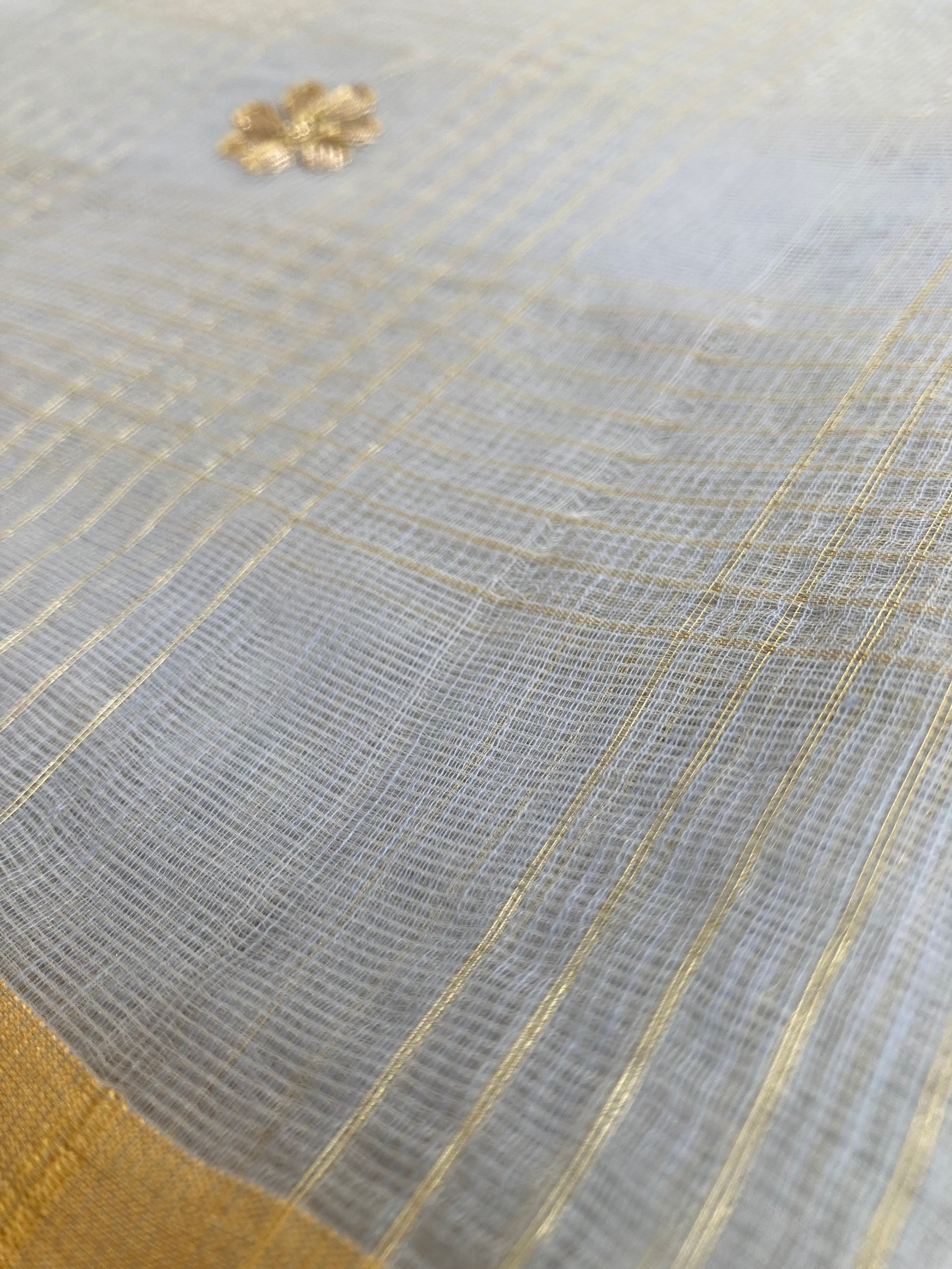 An exquisite Kota Doria saree adorned with intricate gotta patti work, blending traditional craftsmanship with timeless elegance. The lightweight and breathable fabric, known for its signature checkered weave, is elevated by the shimmering gotta patti embellishments, perfect for festive occasions, weddings, and celebrations. This saree is a beautiful balance of sophistication and heritage, making it a must-have in any ethnic wardrobe.
