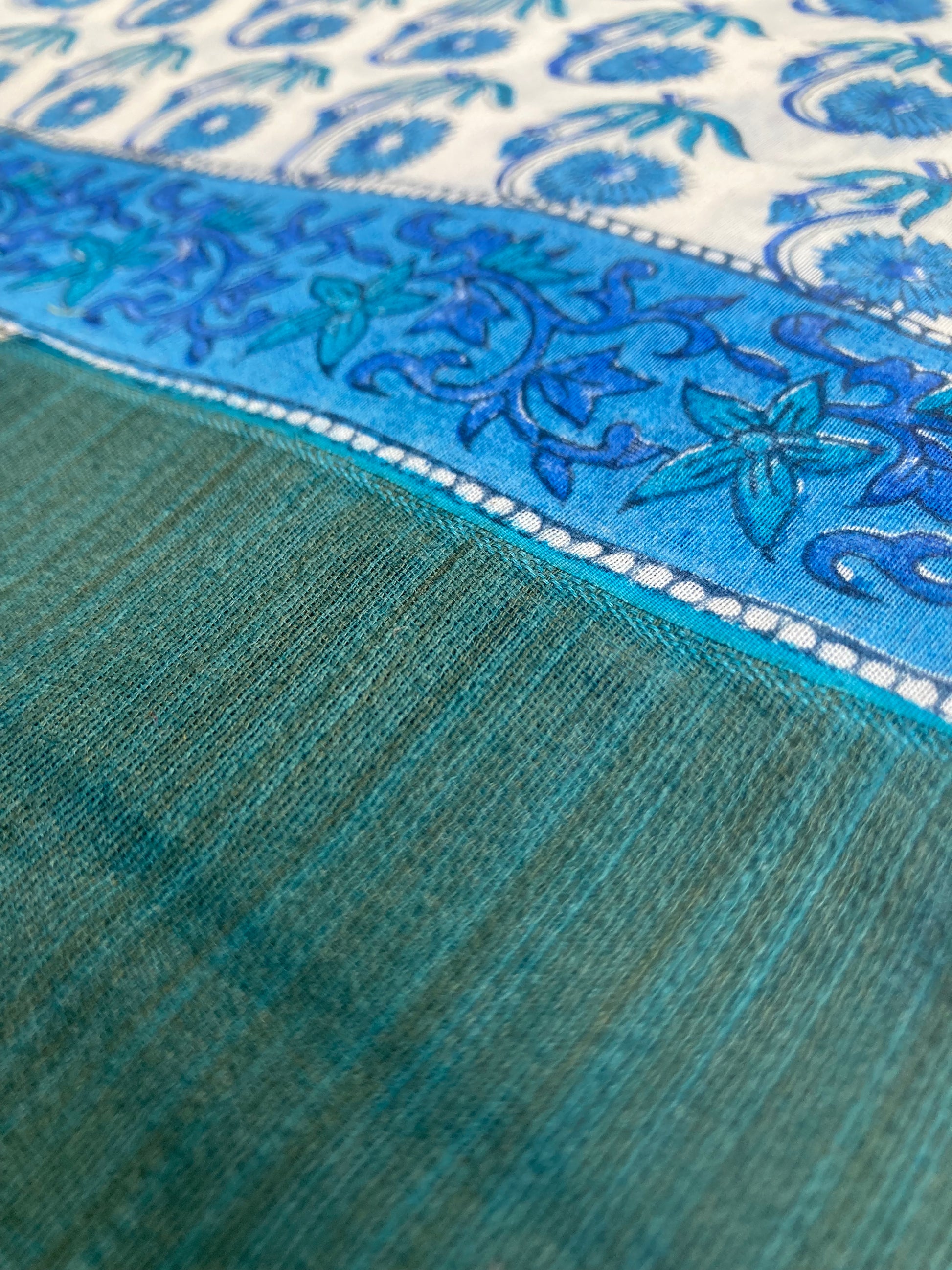 Discover the elegance of tradition with Maanto’s Patli Pallu concept sarees, a seamless blend of heritage and craftsmanship. These exquisite drapes bring together the delicate charm of Sanganeri Chanderi sarees and the bold, rustic appeal of Bagru print Chanderi, creating a stunning interplay of patterns and textures.