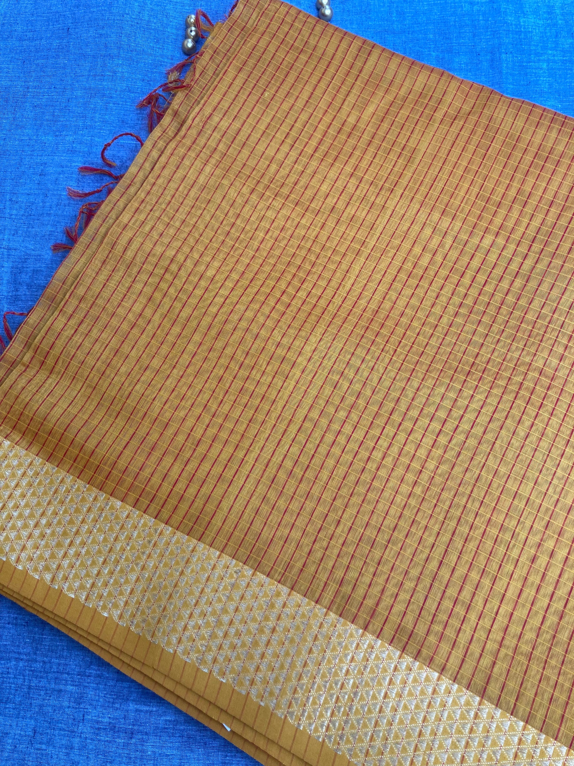 Orange Peel Maheshwari Saree